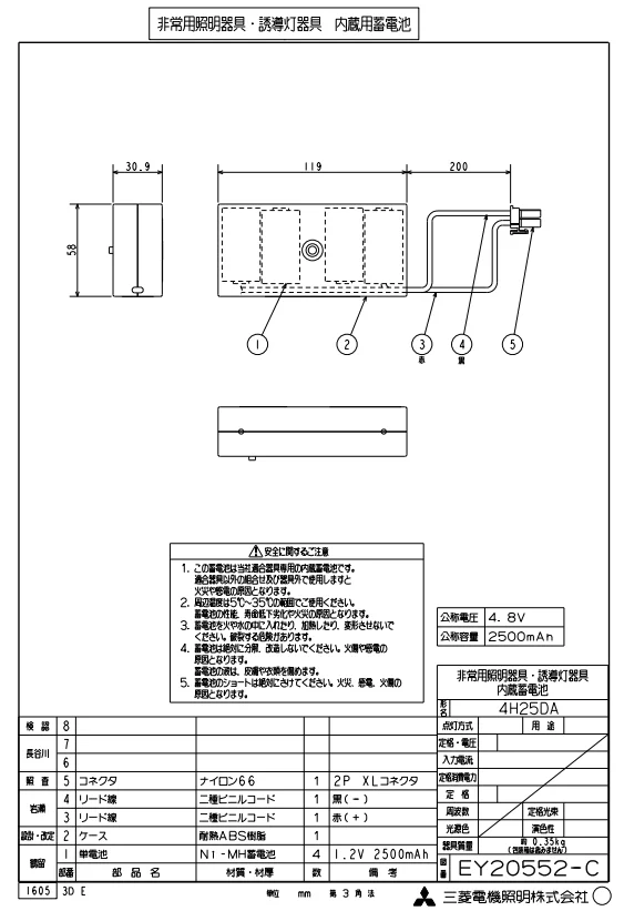 4H25DA 三菱電機製 純正部品 新品 誘導灯用交換電池 (4H-25DA) 4.8V2500mAh