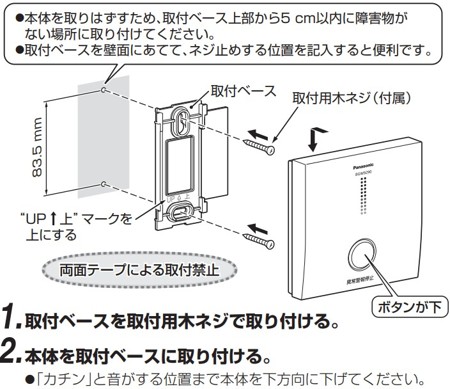 | 電池切れ警報時 | 「ピッ、電池切れです。」が3回鳴動し、その後約40秒ごとに「ピッ」が鳴動 | |