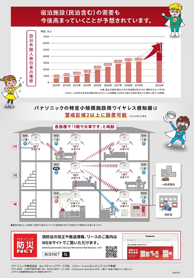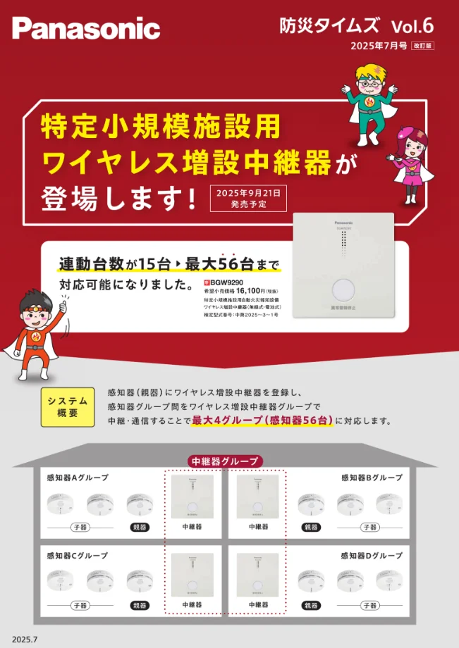 | 電波異常警報時 | 「ピッピッ、感知器の電波が受信できません。」もしくは 「ピッピッ、中継器の電波が受信できません。」もしくは、 「ピッピッ、感知器と中継器の電波が受信できません。」が3回鳴動し、 その後約40秒ごとに「ピッピッピッ」 が鳴動 |