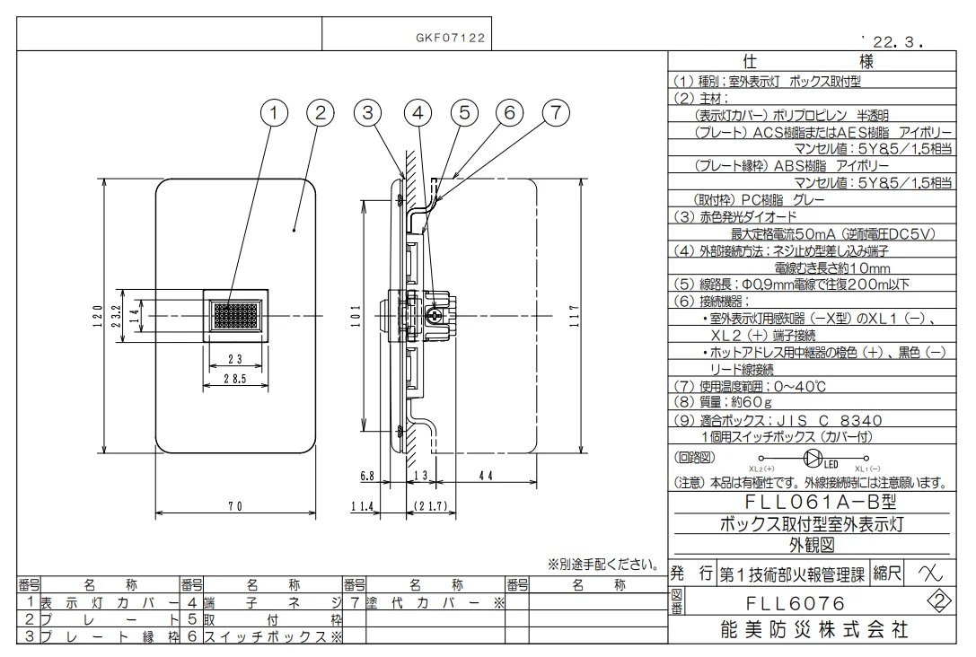 - 種別;室外表示灯 ボックス取付型
