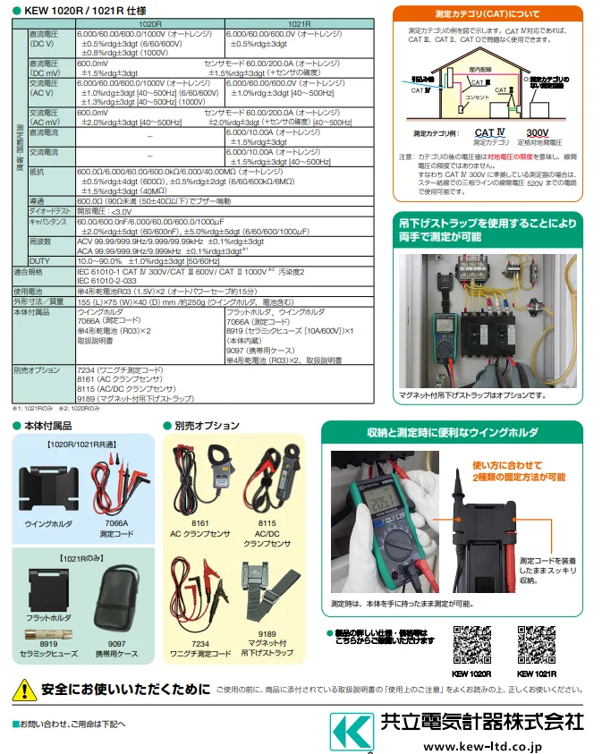 KEW1021R 収納と測定時に便利なウイングホルダ付属