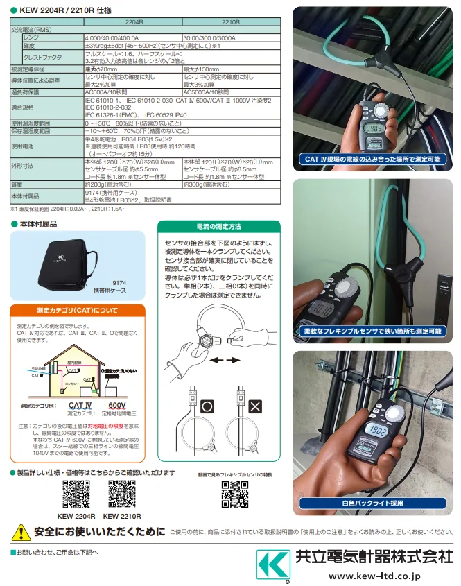 - 国際安全規格IEC61010-1,IEC61010-2-032 CATIII1000V/CATIV600Vに準拠した安全設計