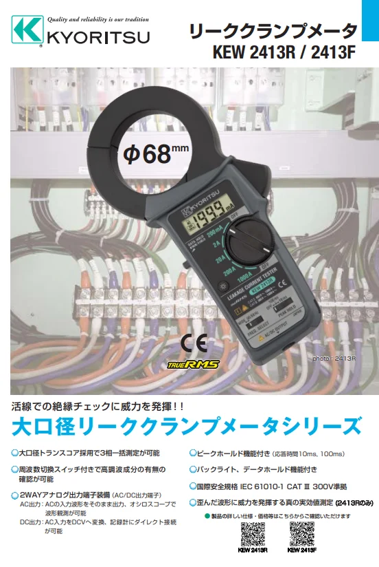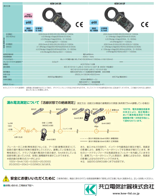 漏れ電流・負荷電流測定用クランプメータキュースナップKEW2413F