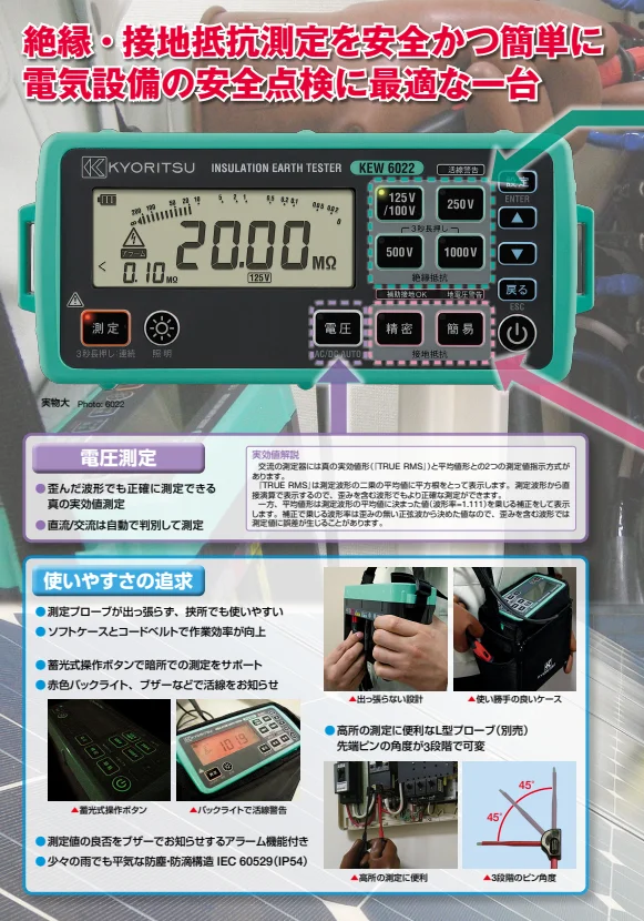 (活線警告、補助接地OK など) - 暗所での作業をサポートするバックライトや蓄光式操作ボタン