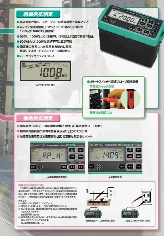 - リモートスイッチ付測定プローブによる簡易測定で接地測定が簡単