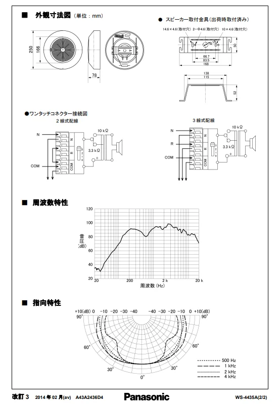 WS-4435Aはパナソニックの12cm露出形天井スピーカーです。