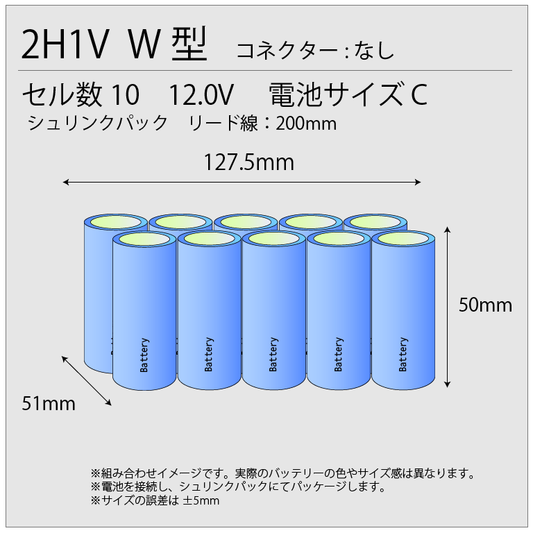 サイズ表記の無い組電池のサイズは使用するセルの種類によって異なります。ご注文後、当社で作成する組電池のサイズをご連絡いたしますので、ご確認をお願いいたします。
