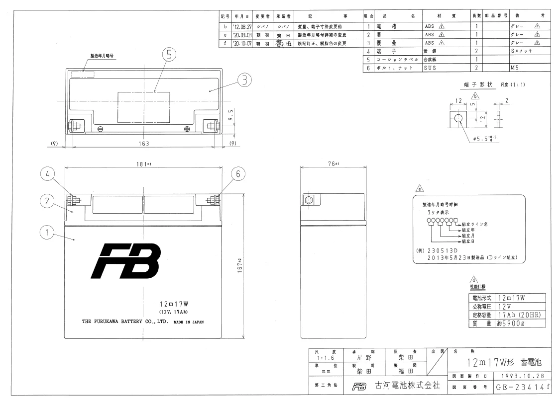 12M15B 古河電池製 小型制御弁鉛蓄電池 mシリーズ<標準品>