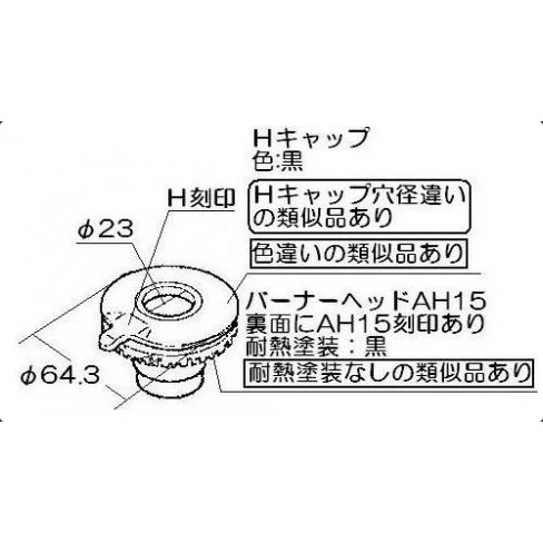 バーナーキャップ【強火力バーナー用】(黒) ※刻印 裏面「AH15」あり