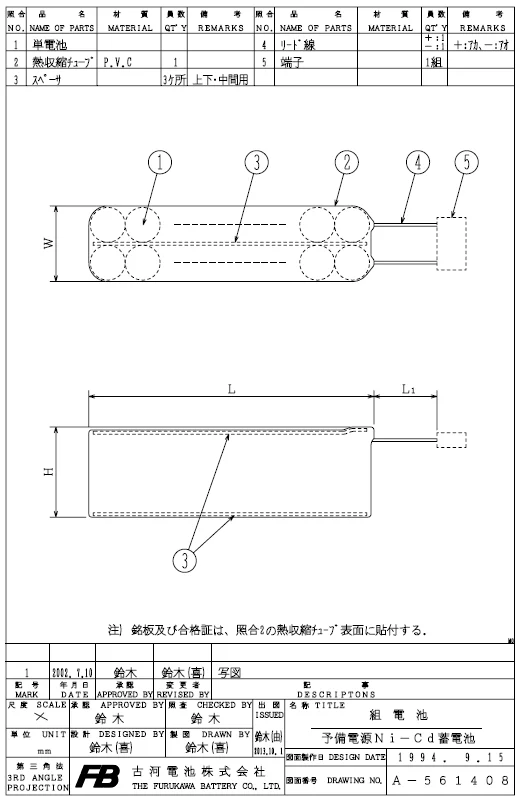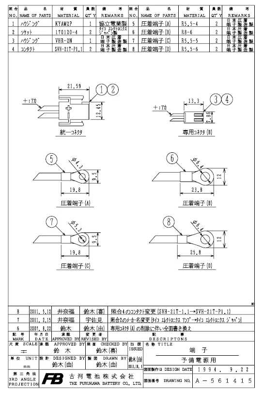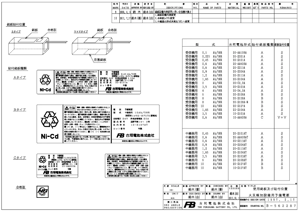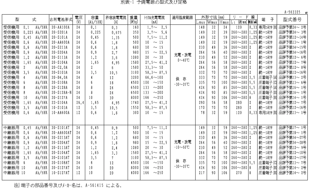 | 古河形式 | 定格(V) | 容量 (Ah/5HR) |
