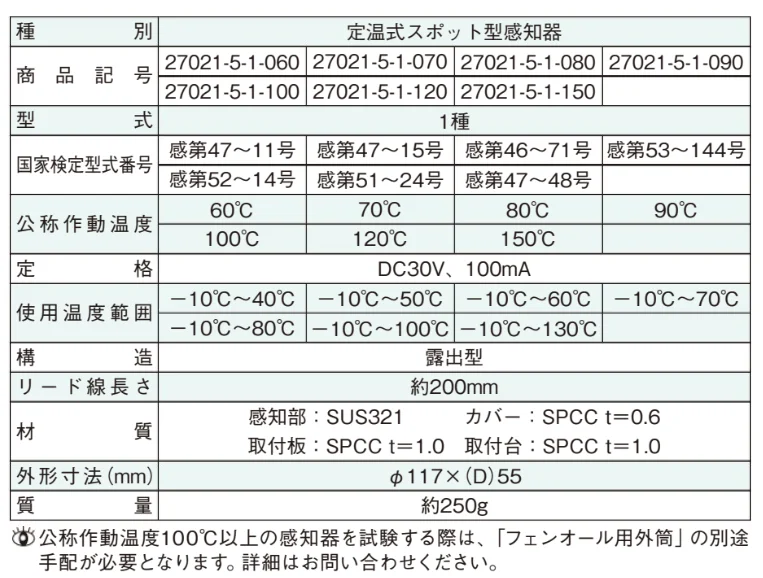 27021-5-1-150 ホーチキ(フェンオール)定温式スポット熱感知器 高温型 露出型 150℃