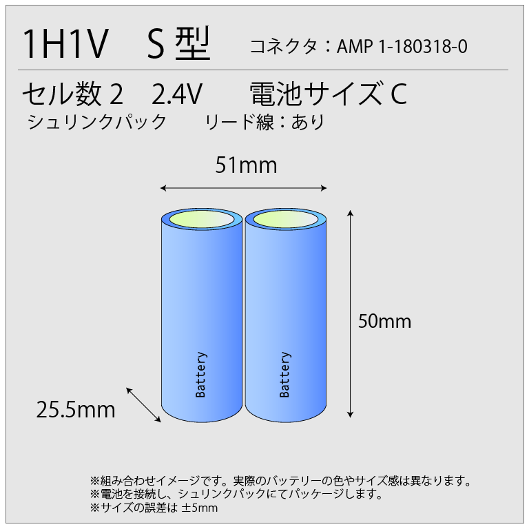 サイズ表記の無い組電池のサイズは使用するセルの種類によって異なります。ご注文後、当社で作成する組電池のサイズをご連絡いたしますので、ご確認をお願いいたします。