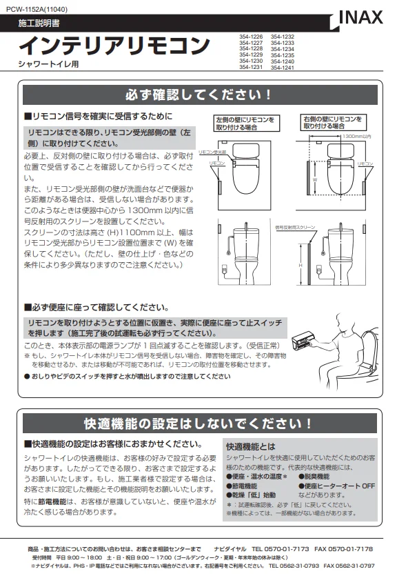 354-1235 LIXIL・INAX 純正部品 壁リモコンキット トイレ部品 【電池・ビスなし】