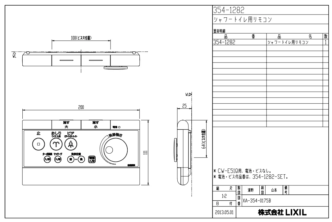 354-1282A LIXIL・INAX 純正部品 リモコン トイレ部品