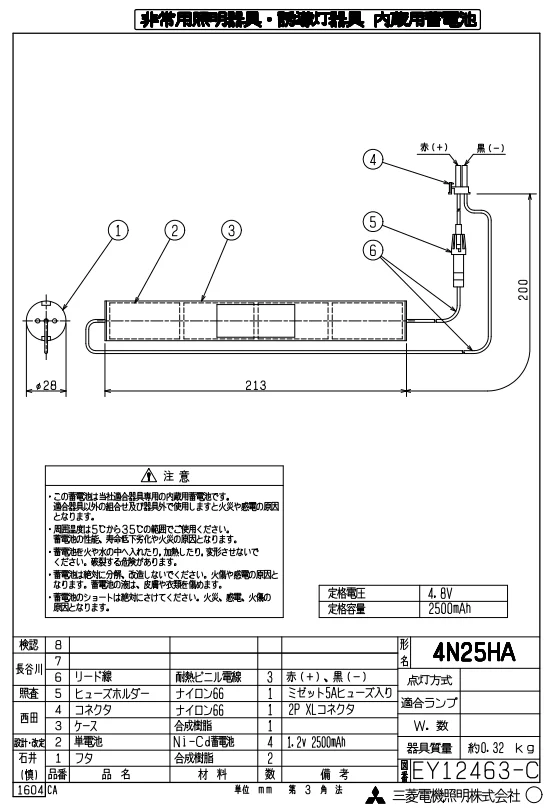 三菱誘導灯非常灯バッテリー4N-25HA)