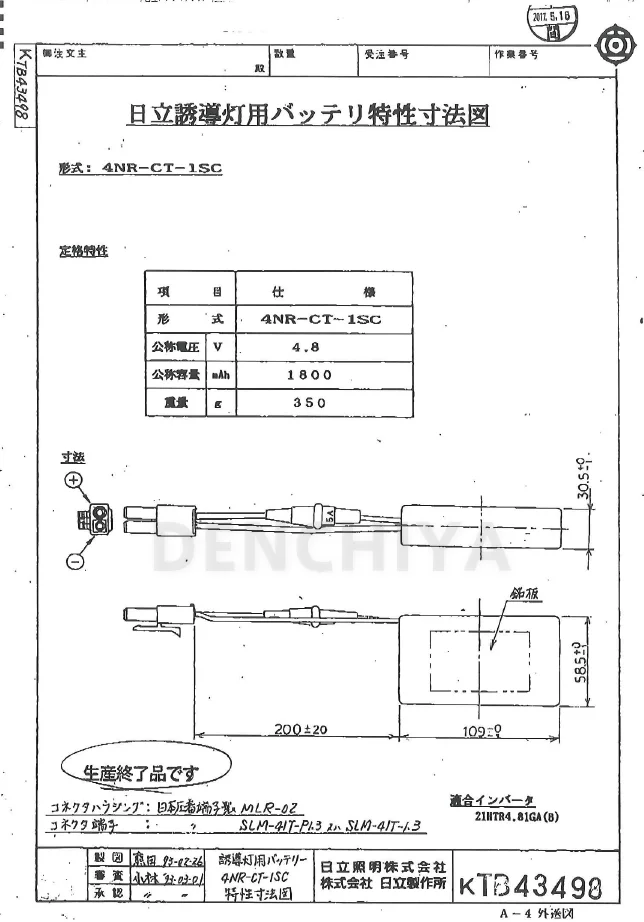 4NR-CT-1SC相当品 (同等品) 電池屋製 新品 4.8V1800mAh <年度シール付き> コネクター付きそのまま取付できます。
