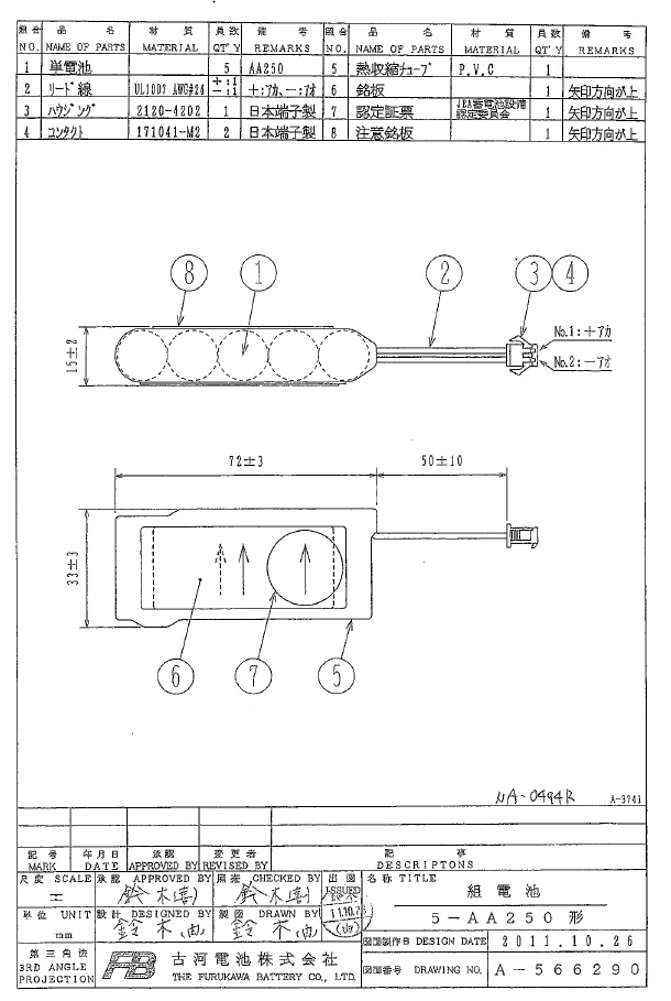 この交換電池は古河製の非常警報用バッテリーに使われる5-AA250です。非常警報用バッテリーの事なら電池屋へ!
