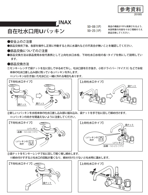 50-08-1P LIXIL・INAX 純正部品 1/2 自在水栓用パイプ部Uパッキン キッチン部品