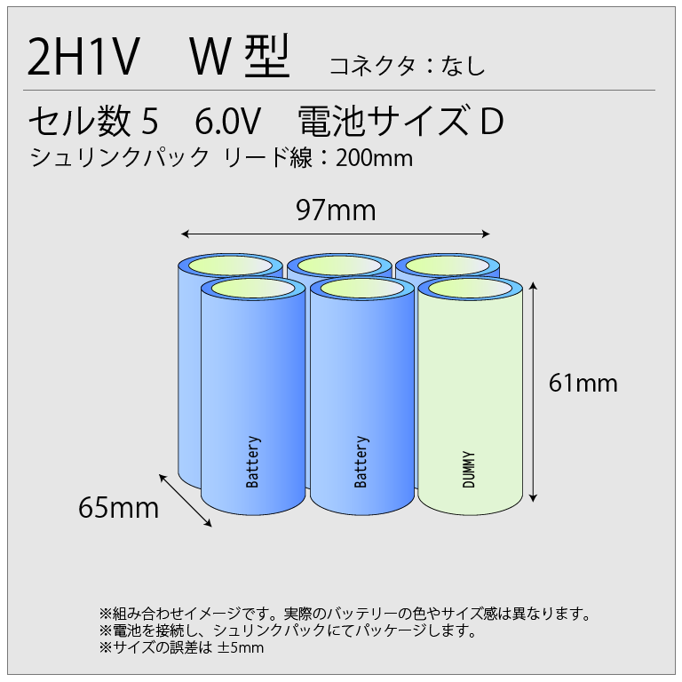 5/4000D相当品 6V4000mAh 組電池 W型 リード線切りっぱなし