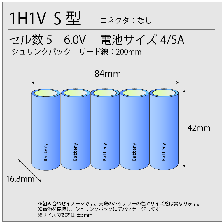 サイズ表記の無い組電池のサイズは使用するセルの種類によって異なります。ご注文後、当社で作成する組電池のサイズをご連絡いたしますので、ご確認をお願いいたします。