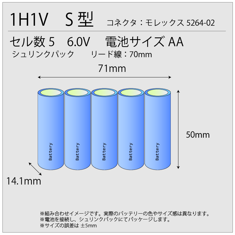 サイズ表記の無い組電池のサイズは使用するセルの種類によって異なります。ご注文後、当社で作成する組電池のサイズをご連絡いたしますので、ご確認をお願いいたします。