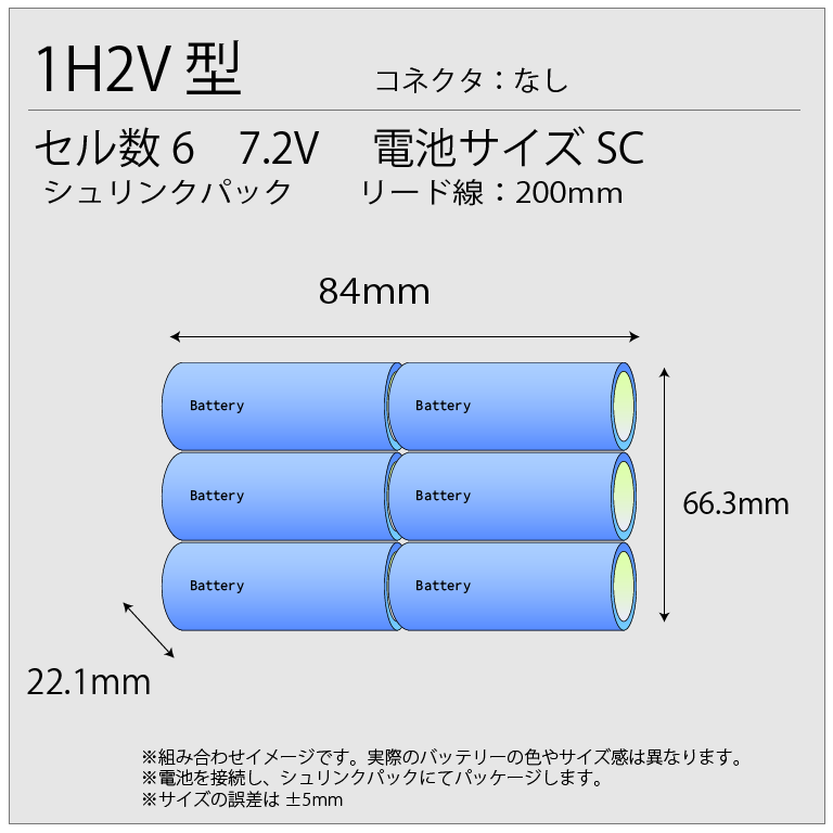 6N-1200SC相当品 1H2V型 SANYO製相当品 7.2V1200mAh コネクターなしリード線切りっぱなし