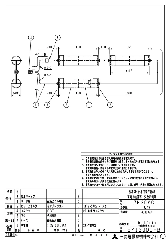7N30AC 三菱電機製 (7N-30AC) 非常灯用交換電池 7.2V3000mAh 防水仕様