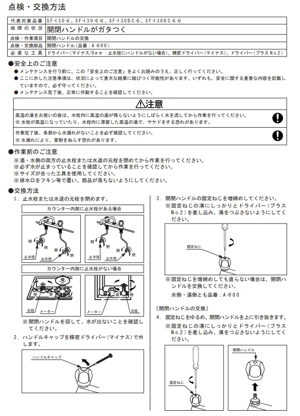 A-080 LIXIL・INAX 純正部品 Gハンドル キッチン部品