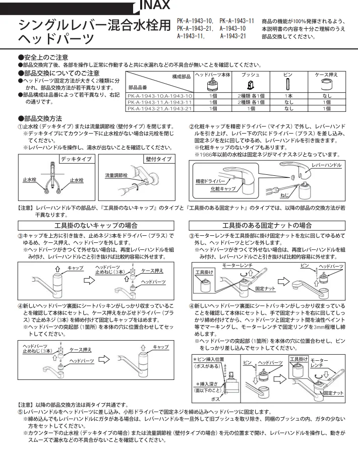 A-1943-10 LIXIL・INAX 純正部品 ヘッドパーツ(カートリッジ) キッチン部品