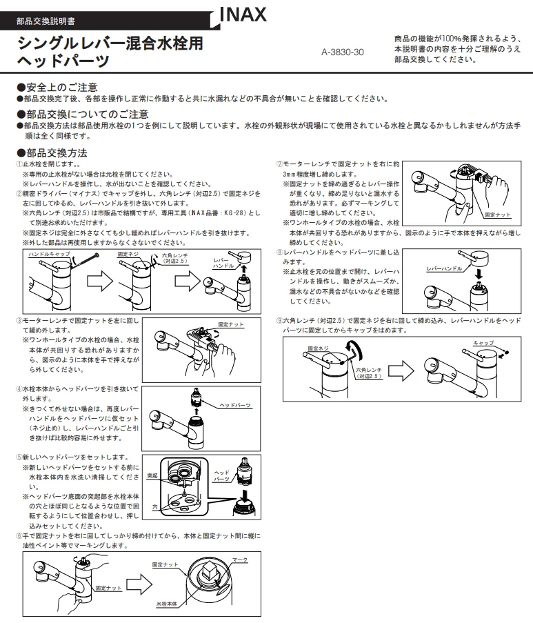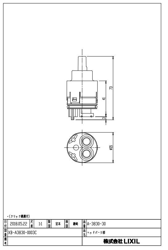 A-3830-30 LIXIL・INAX シングルレバーヘッドパーツ部(クリック機構付) キッチン部品
