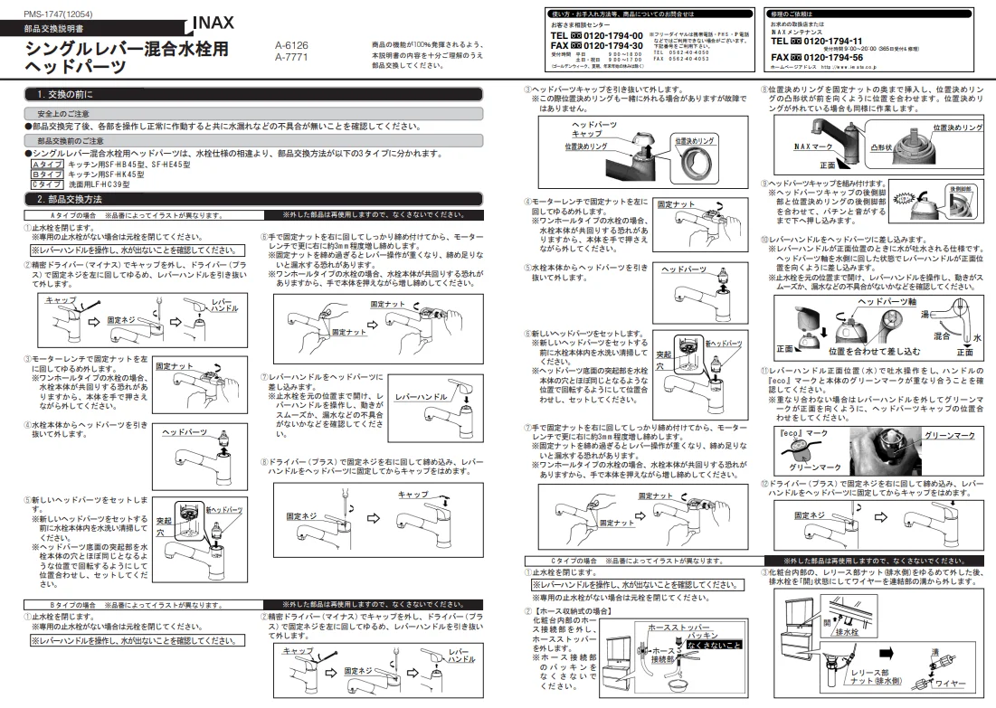 A-7771 LIXIL・INAX 純正部品 シングルレバーヘッドパーツ部 水栓