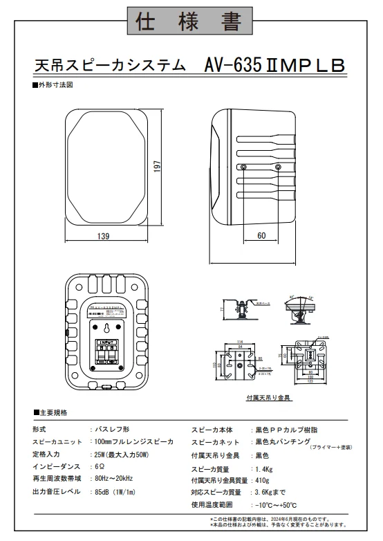 スピーカー AV-635-II MP LB 仕様