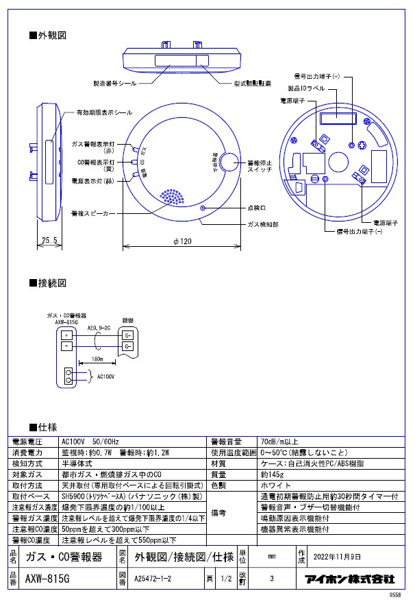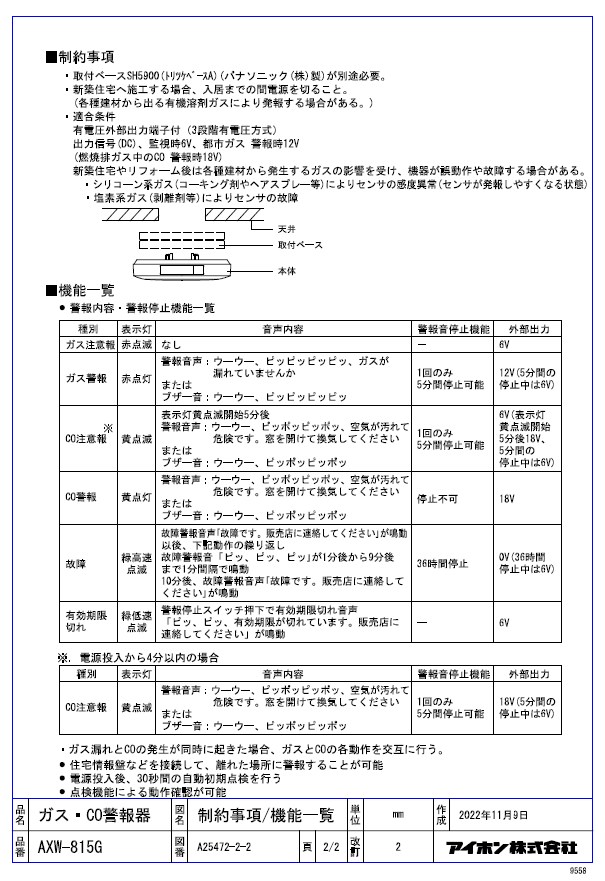 - 種別: ガス・CO警報器