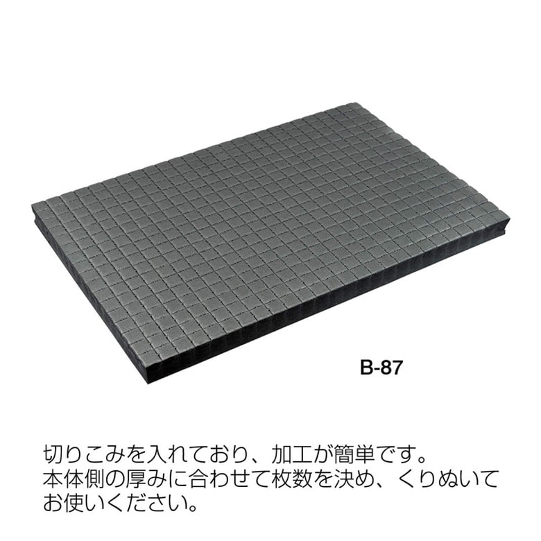 切りこみを入れており、加工が簡単です。本体側の厚みに合わせて枚数を決め、くりぬいてお使いください。