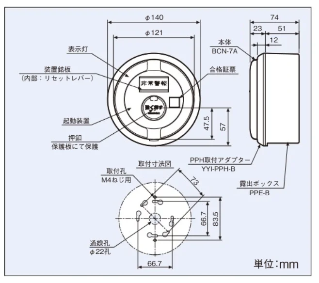 - 品名: 発信機BCN-7A + ケーブルYYT-9A + アダプタYYI-PPH-B + 露出ボックスPPE-B