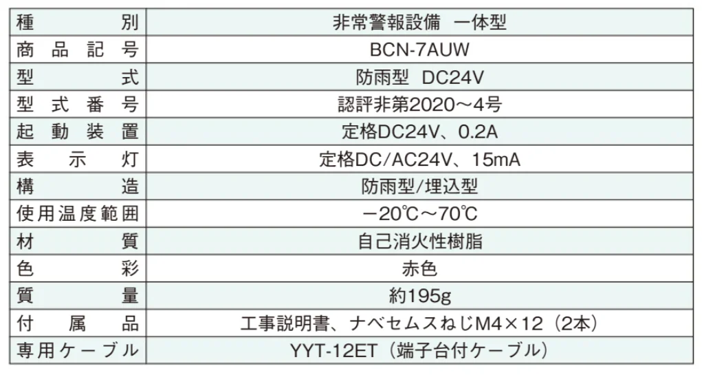 BCN-7AUW ホーチキ 非常警報設備 一体型 防雨型 埋込型(セット品)