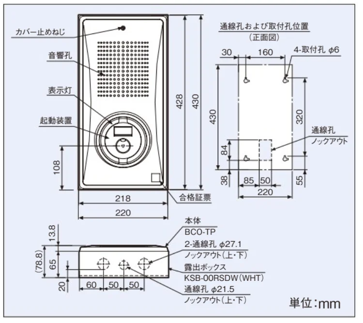 - 品名: 本体BCO-TP + ボックスKSB-00RSDW(WHT)
