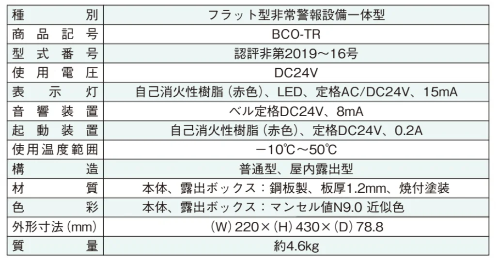 BCO-TR ホーチキ フラット型非常警報設備 一体型 縦型 露出型(セット品)