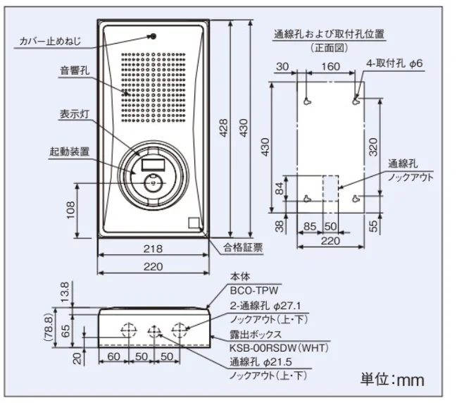- 品名: 本体BCO-TPW + ボックスKSB-00RSDW(WHT)
