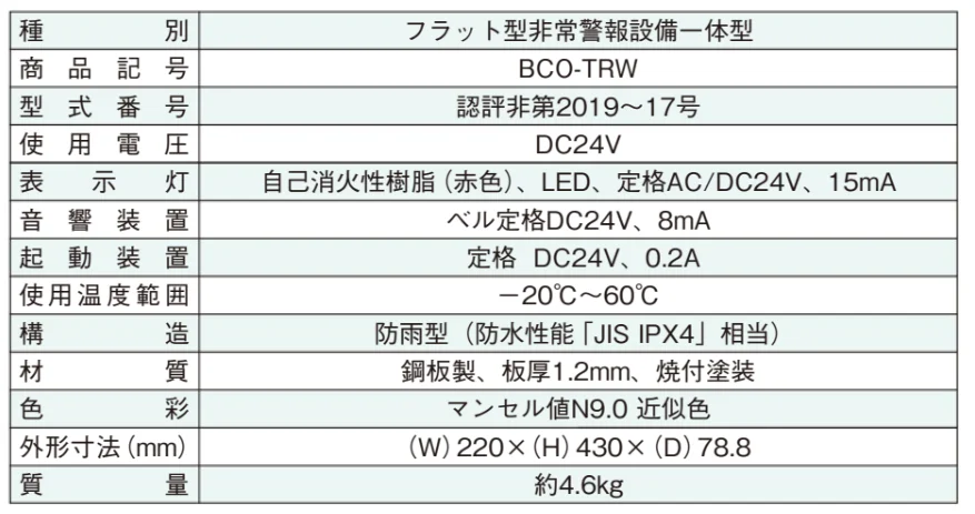 BCO-TRW ホーチキ フラット型非常警報設備 一体型 防雨型 縦型 露出型(セット品)