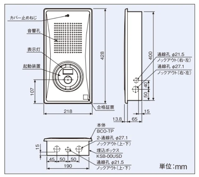 - 品名: 本体BCO-TP + ボックスKSB-00USD