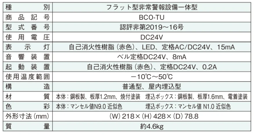 BCO-TU ホーチキ フラット型非常警報設備 一体型 縦型 埋込型(セット品)