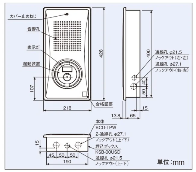 - 品名: 本体BCO-TPW + ボックスKSB-00USD