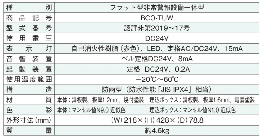 BCO-TUW ホーチキ フラット型非常警報設備 一体型 縦型 埋込型(セット品)