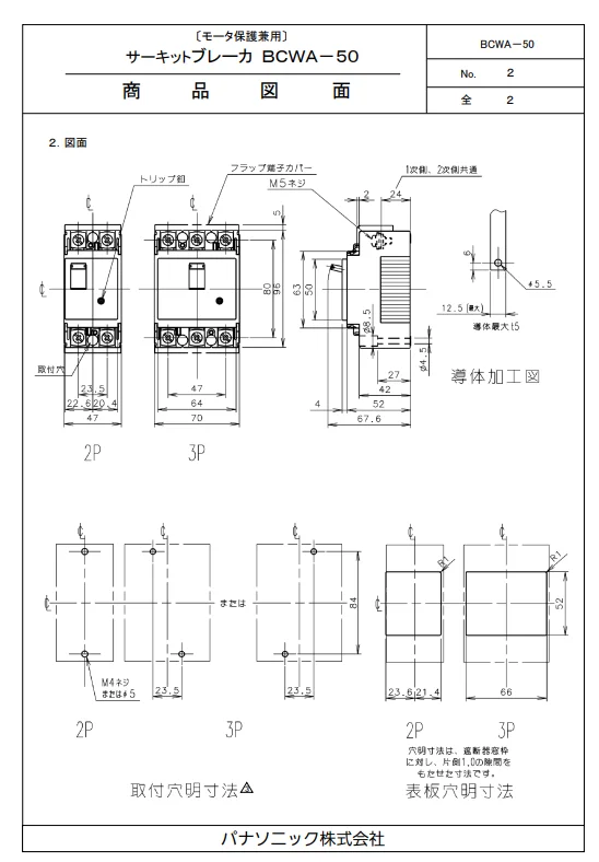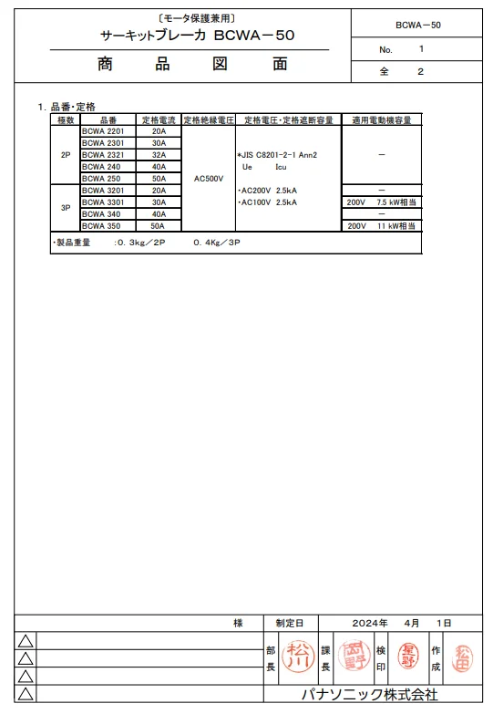 - その他: 極数 3P 定格電流 50A 定格絶縁電圧 AC500V