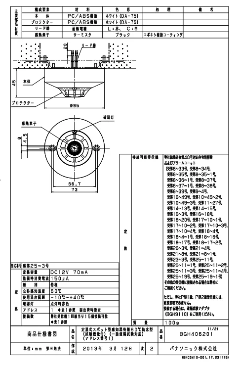 BGH406201 パナソニック 定温式スポット型感知器 特種 60℃ 防水型 (アドレス1)
