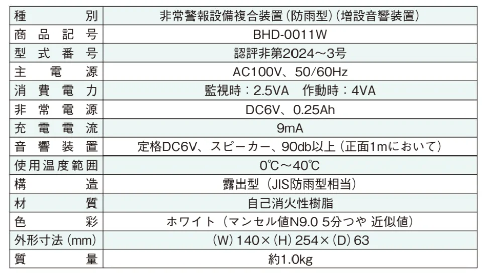 - 種別: 非常警報設備 増設音響装置