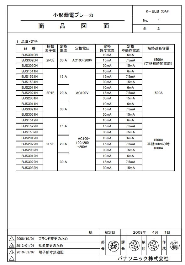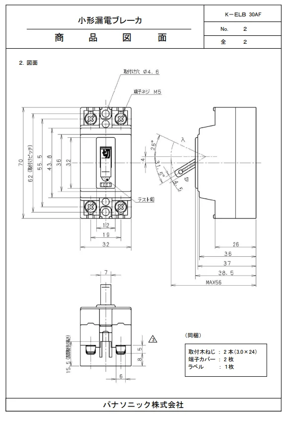- 種別: 小形漏電ブレーカ