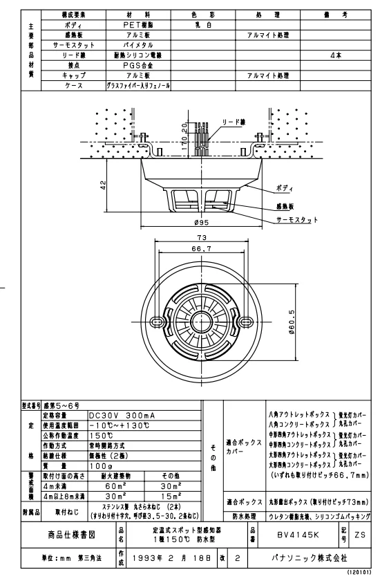 BV4145K パナソニック 定温式スポット型感知器 1種150℃防水型 【全国一律送料450円】