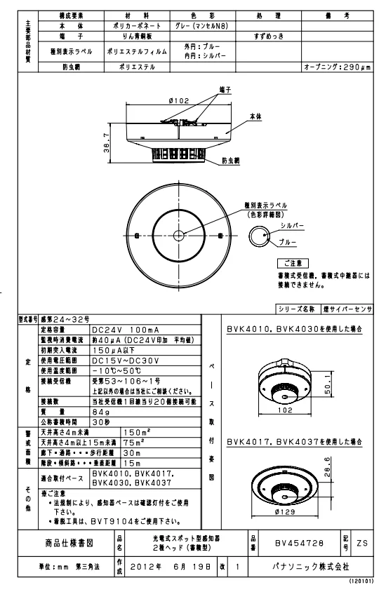 BV454728 パナソニック 光電式スポット型煙感知器 2種ヘッド(蓄積型)